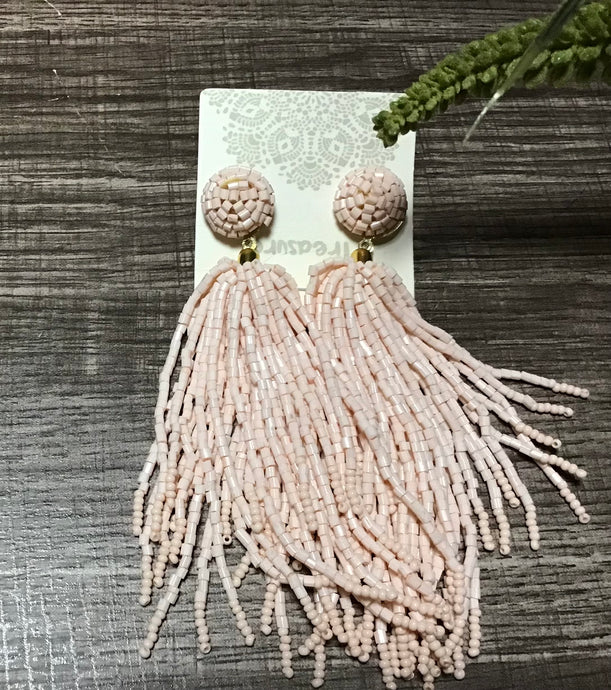 Light Pink Beaded Tassel Earrings