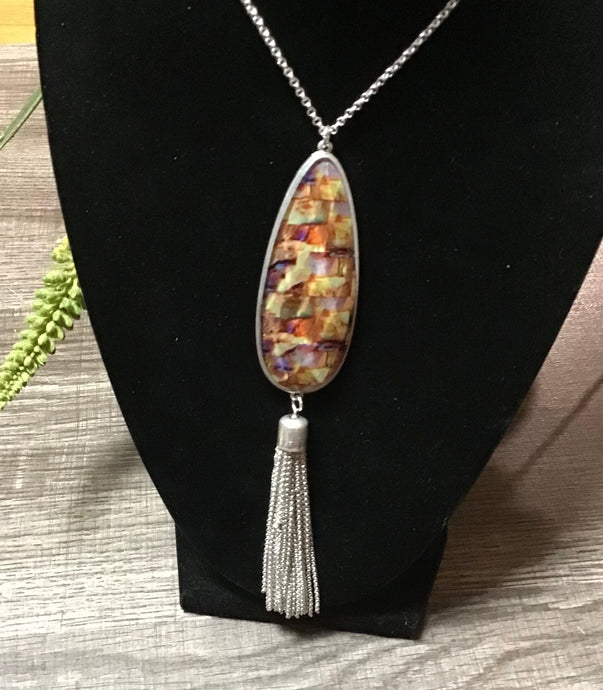 Multi Color Drop Tassel Long Necklace