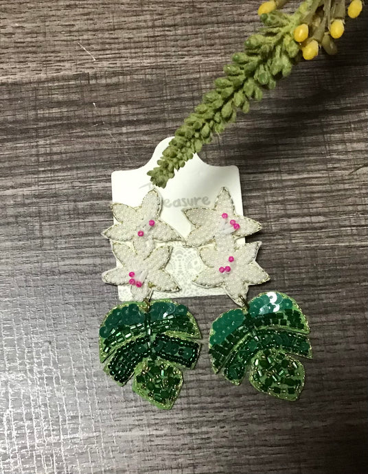 Summer Leaf Seed Bead Earrings