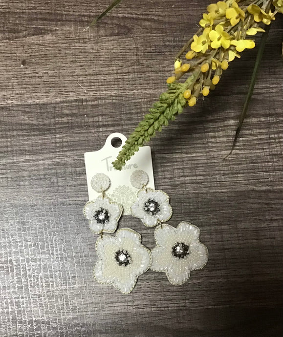 White Flowered Seed Bead Dangles
