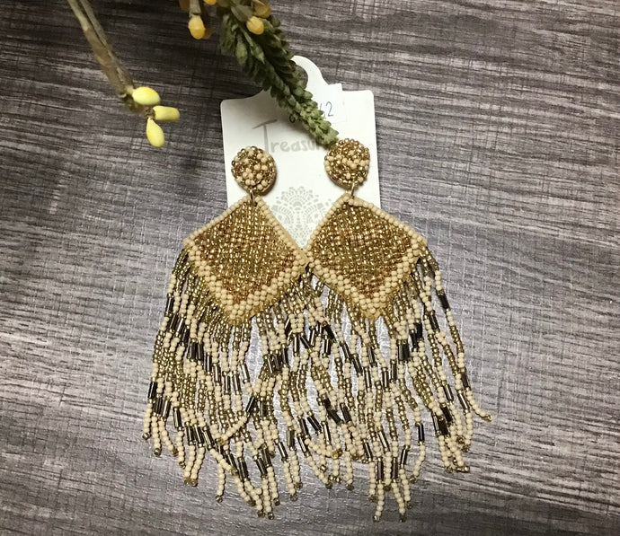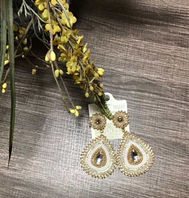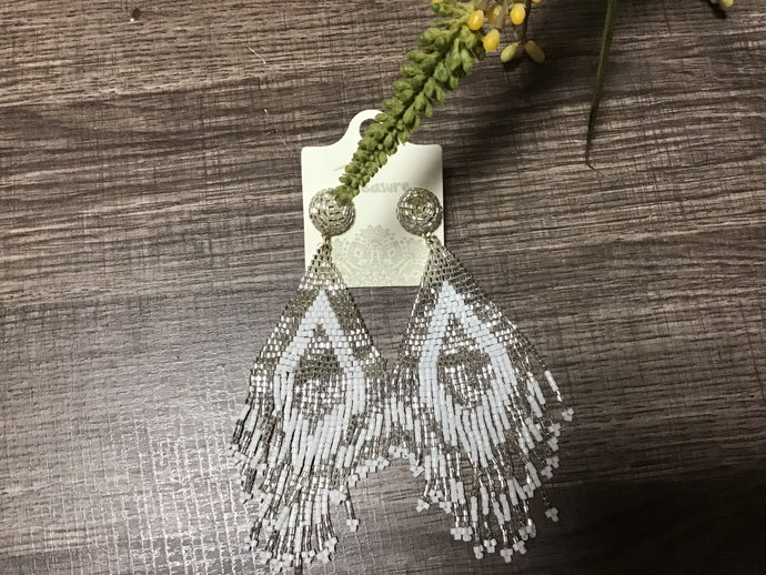 Silver and White Seed Bead Earrings