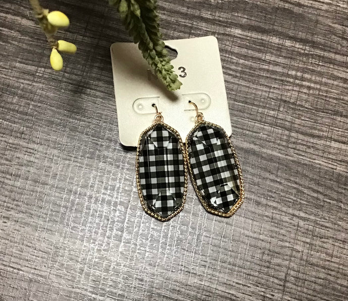 Black & White Plaid Drop Earrings