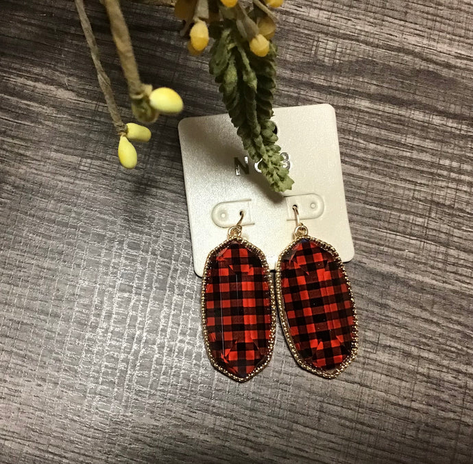 Red & Black Buffalo Plaid Drop Earrings