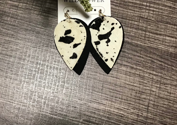 Cow print black leather earrings