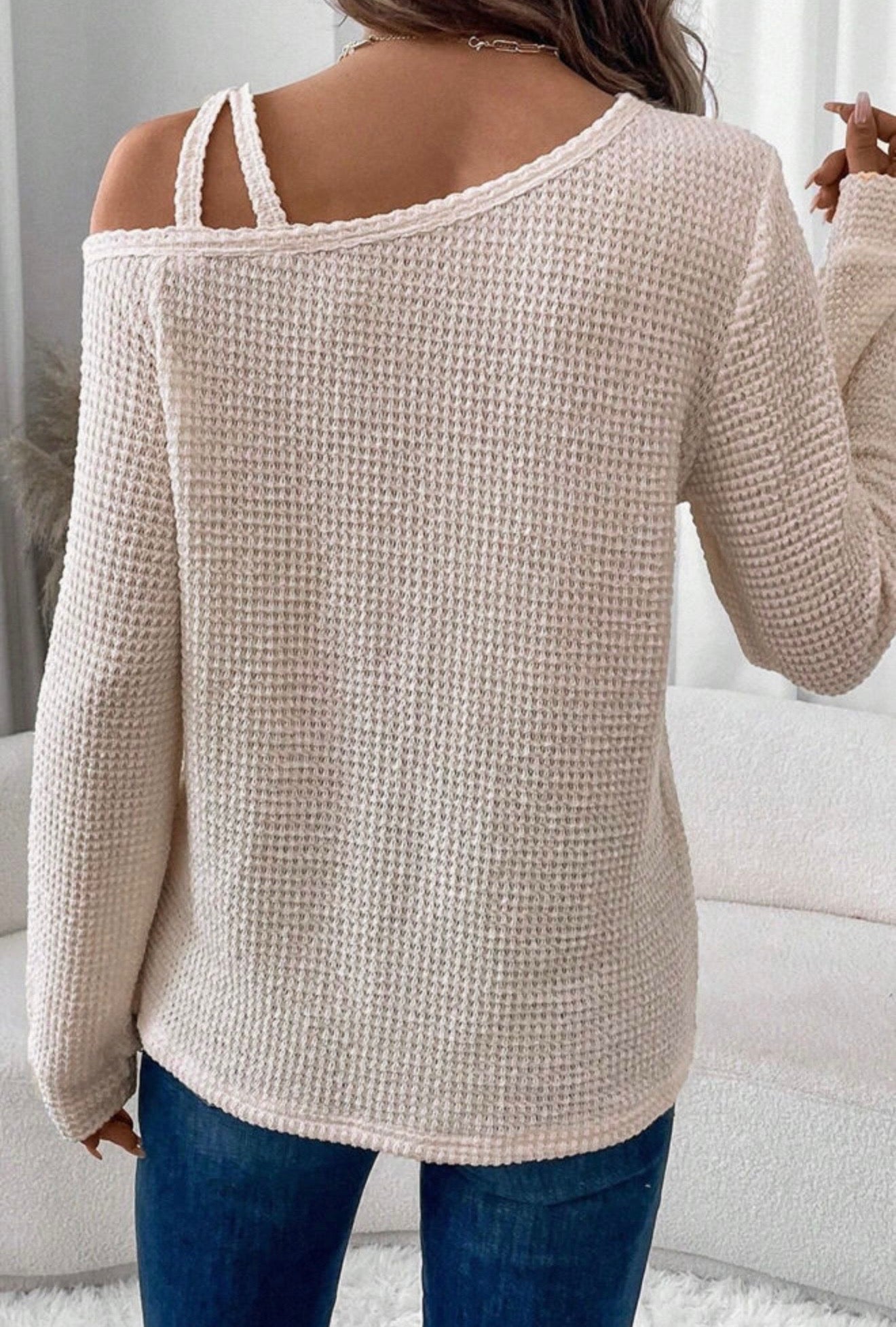 Beige Knit Asymmetrical Top