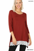 Rose Pink Lace Accent Quarter Sleeve Top